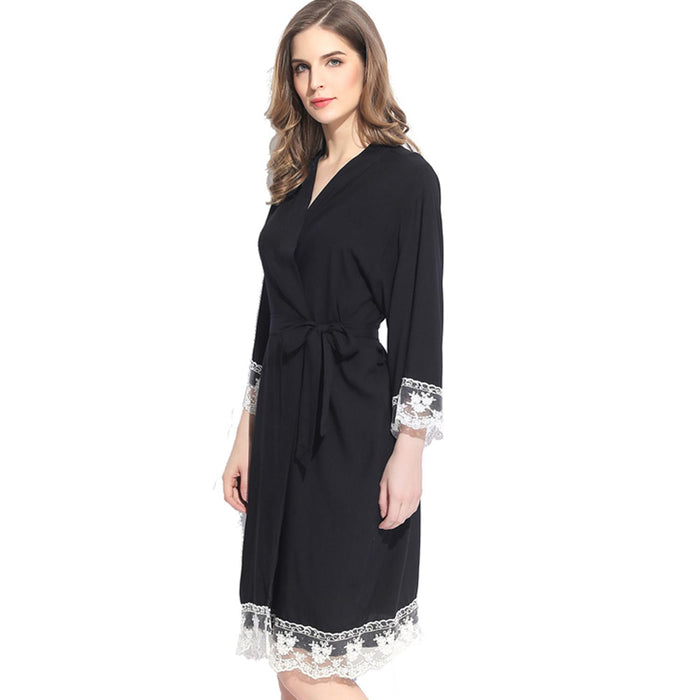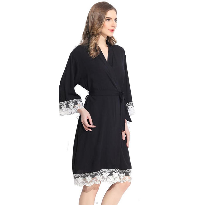 Navy Blue - Solid Cotton Lace Kimono Robe