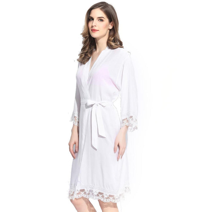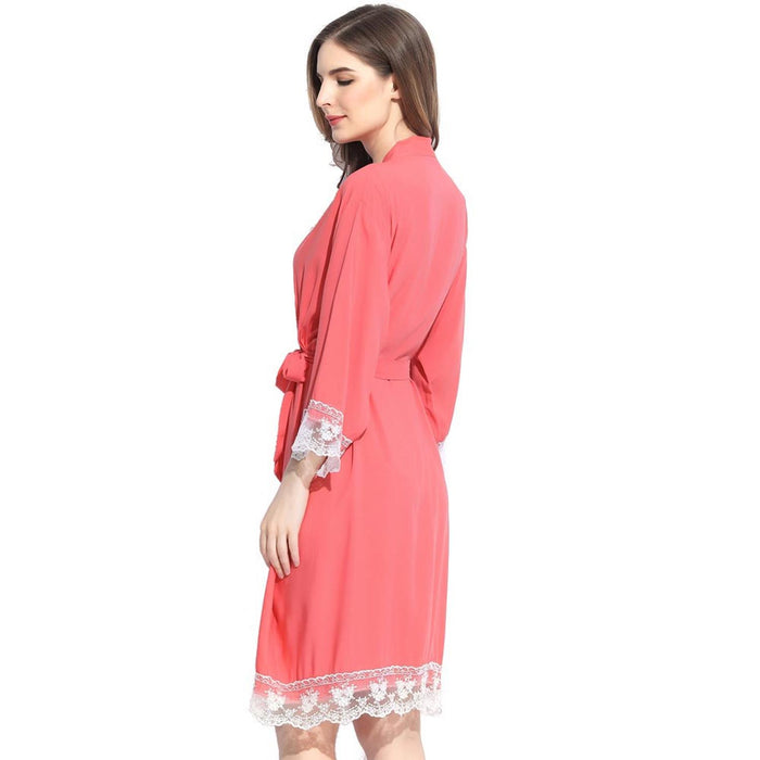 Dusty Pink - Solid Cotton Lace Kimono Robe