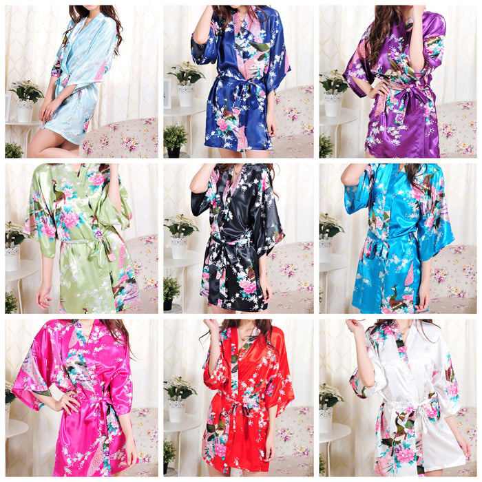 Sets - Bridal Party Peacock Satin Kimono Robe